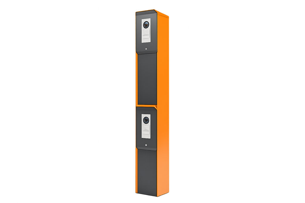 Mit einer Gesamthöhe von 2,2 Metern ist dieses Zutrittsterminal für die direkte Bedienung aus dem Führerhaus eines LKW ausgelegt. Die erhöhte Positionierung der Komponenten ermöglicht eine komfortable Steuerung ohne Aussteigen. Zusätzlich verfügt das System über eine zweite, niedriger angeordnete Bedienebene für PKW Fahrer. Dadurch eignet sich das Terminal für Zufahrten mit kombiniertem Lieferverkehr und Personenverkehr.